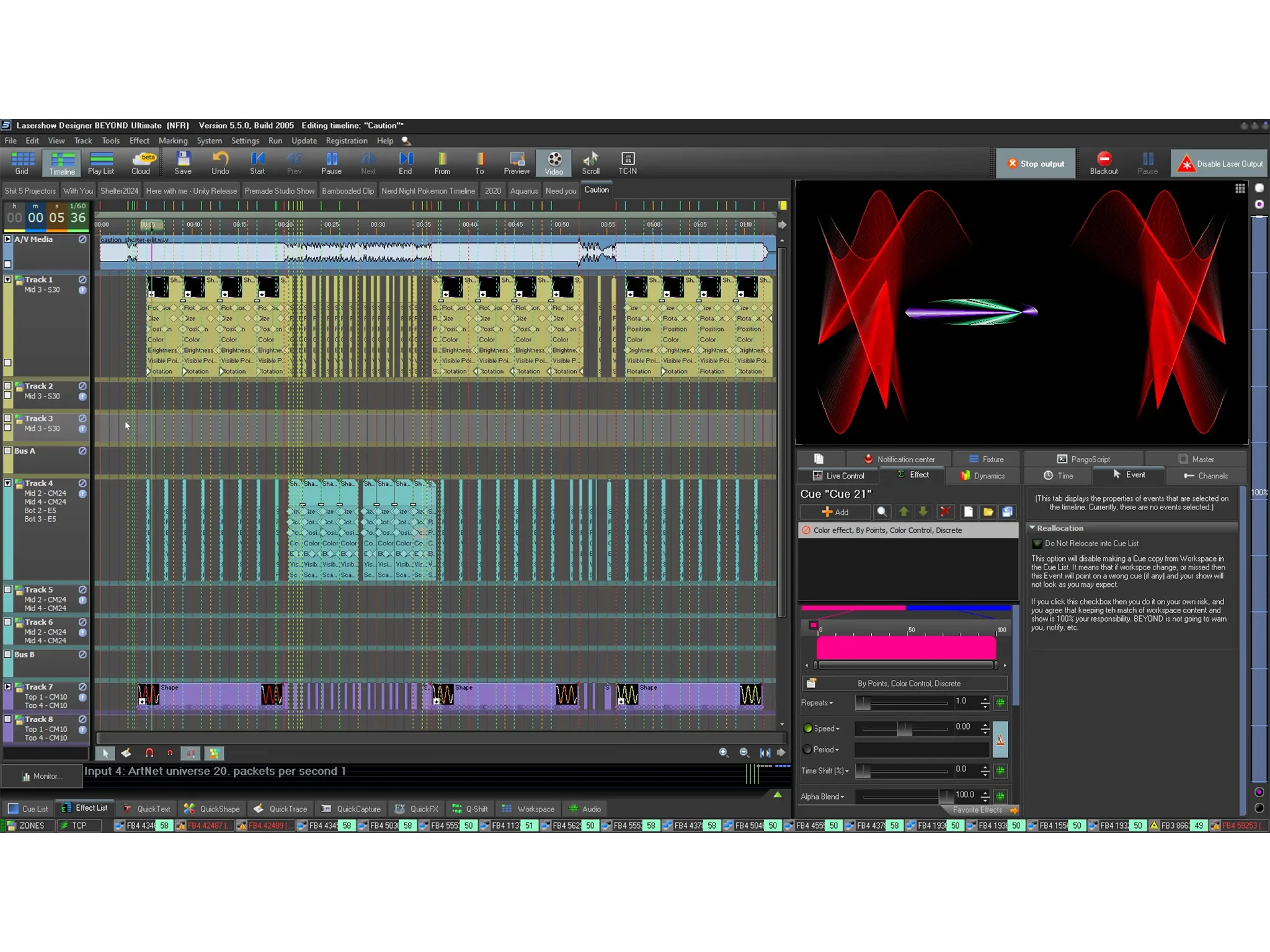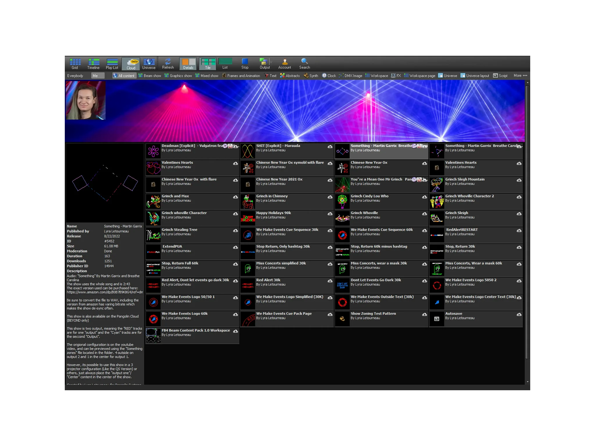 BEYOND is a true multimedia software package, created to help make it easy for you to integrate lasers, into any type of setup, and combine those lasers with audio, video, pyro, and other special effects. With support for all major lighting protocols (DMX, ArtNET, CITP, sACN, SMPTE, MIDI, and more).