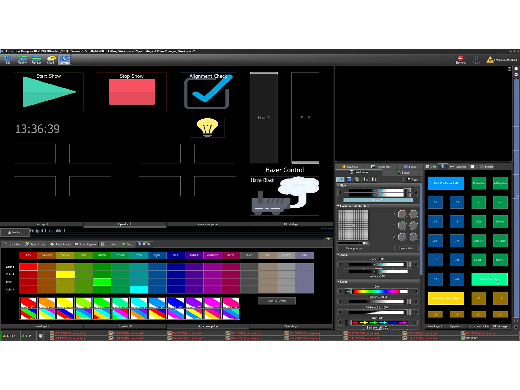 BEYOND Universe - Das BEYOND Universe ist ein aufregendes Werkzeug, mit dem Sie benutzerdefinierte Arbeitsbereiche innerhalb der Software erstellen können, die so angepasst werden können, wie Sie es wünschen. Wenn Sie beispielsweise einen Arbeitsbereich mit speziellen Reglern für Farben, Helligkeit, Rotation, DMX-Trigger usw. haben möchten und diesen Arbeitsbereich für einen Kunden oder eine Show sperren möchten, ist dies alles mit dem BEYOND Universe möglich. Klicken Sie hier, um mehr zu erfahren.